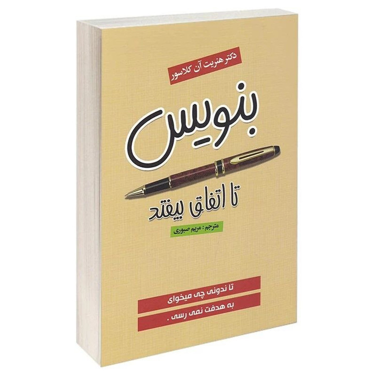 مترجم:مینا دهباشی هیچکسی با هیچ قدرت و مقامی نمیتواند بیان کند که آرزوی شما ناچیز و آرزوی شخص دیگری از درجه و اعتبار و ارزش بالاتری برخوردار است. آرزوی داشتن نمرهی بیست برای یک دانشآموز همانقدر مهم و ارزشمند است که آرزوی ثروتمند شدن برای یک انسان بالغ. معرفی: هنریت کلاوسر در کتاب بنویس تا اتفاق بیافتد قدرت طرفداران تفکر مثبت و خلاق را به طور خلاصه بیان میکند. آنها بیش از اینکه رویکرد تفصیلی و بیمعنی داشته باشند، دارای پیام مهمی هستند که با رویکرد "میخواهم پس اتفاق میافتد" همراه است. «اگر بدانید چه میخواهید، آن را به دست خواهید آورد».
